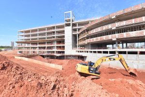 Segundo o engenheiro responsável pela obra, Adriano Barra, nos últimos meses foi finalizado os pisos de concreto armado do subsolo e a estrutura de lajes dos pavimentos do edifício principal, blocos A, B e C. As obras do Bloco D também já foram iniciadas, o que leva à conclusão de 80% da estrutura de concreto. As instalações de esgoto e a drenagem pluvial estão sendo executadas. “De acordo com a nossa logística e em compasso com a fiscalização, estamos avançando rapidamente”, esclarece Adriano.